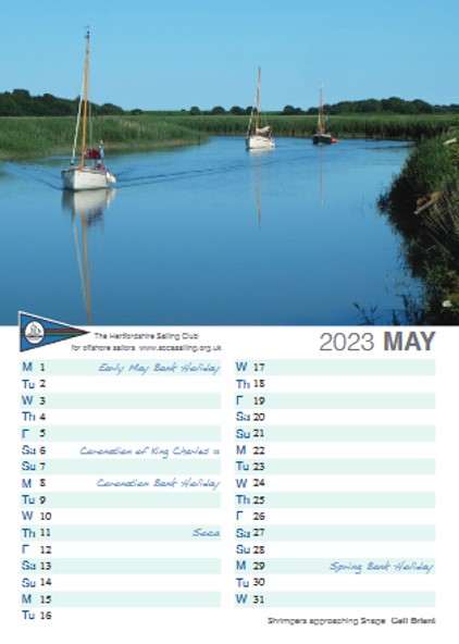 | May | Sailing | May Sailing Weekend (East Coast). Spring Bank Holiday cruise held in conjunction with NOSCA on the East Coast with dinner at Walton and Frinton yacht club. . |