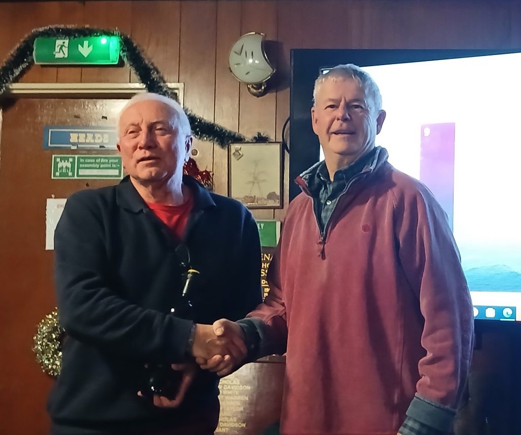 Awarded to Dave Arnold for his outstanding contributions over many years of membership. His talk on trip to the Southern Oceans including Antarctica and Falkland Islands, is an example of the numerous talks he has given to the club. He also always has inspiring