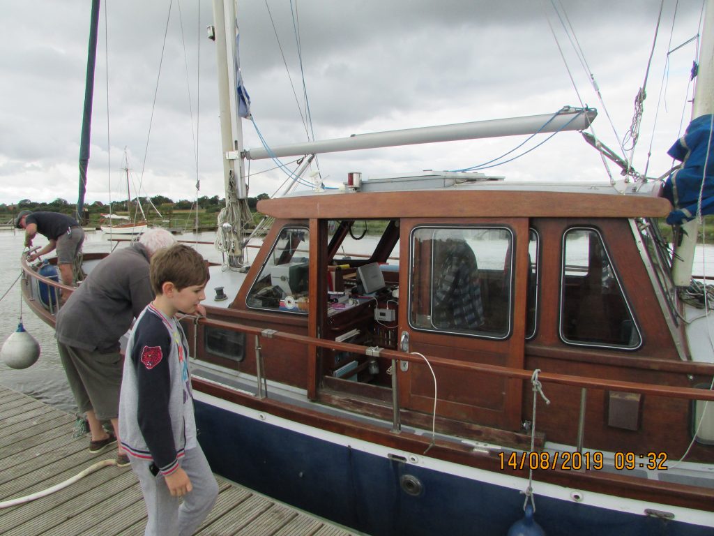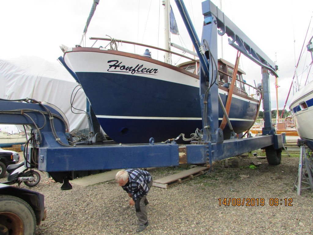 SKYLARK was towed over 500 miles on July 19th to Largs in Scotland to join another 30+ Shrimpers for the rally,.some had already been in the vicinity sailing for a few weeks before. We arrived late Sunday night where we stayed at a local B&B and arranged for SKYLARK to be hoisted into the Marina the following morning