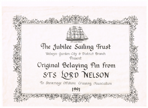Belaying Pin :- For notable contribution at a sailing event