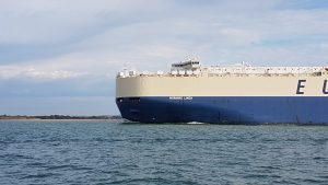 John listened to Southampton VTS in the Solent and several times heard the operator say “Morning Linda” which seemed unusual. He later slowed to stay out of the way of a car carrier and discovered she was named just that (see photo).