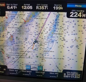 This leg was via the Ramsgate channel. The wind was a southerly F6 requiring motoring to achieve the destination.