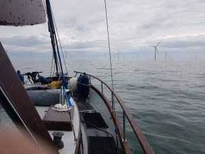 Navigating was reasonably easy as someone had put these really tall marker buoys on the sandbanks. So the instructions to the helm was sail between the wind generators.