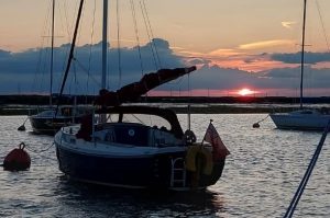 Sapphire had a “fabulous” sail along the coast, racing a larger boat, (Sadler?), arriving at Levington before it, which pleased John.