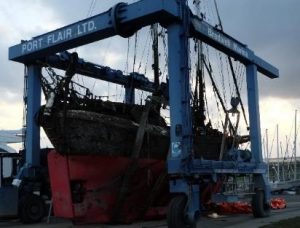 Once the Two Shrimpers arrived at Bradwell Skylark returned to its allocated berth in the Marina and John and Geff helped Tim and Wendy retrieve Lucy to its trailer and de-mast her.