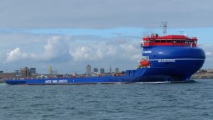 Approaching the harbour entrance, the vessel Bravewind, an unloaded Heavy Load Carrier, that usually carries items such as Wind Turbine Blades. passed close by.