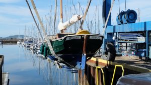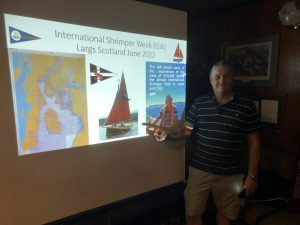SKYLARK was towed over 500 miles on July 19th to Largs in Scotland to join another 30+ Shrimpers for the rally,.some  had already been in the vicinity sailing for a few weeks before. We arrived late Sunday night where we stayed at a local B&B and arranged for SKYLARK to be hoisted into the Marina the following morning