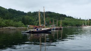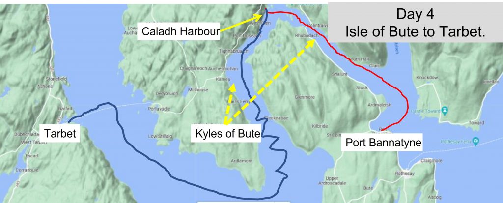 On Thursday the majority of the fleet then set sail anti-clockwise in light winds around the Isle of Bute, through the Kyles of Bute, with amazing scenery all the way to Tarbet on the Kintyre Peninsular.