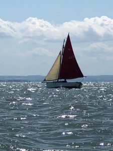 A f4-5 easterly breeze had built up quite a chop going across the Thames but it was on our hindquarters so we flew across, surfing down the waves. An exhilarating sail but I really should have put a reef in!