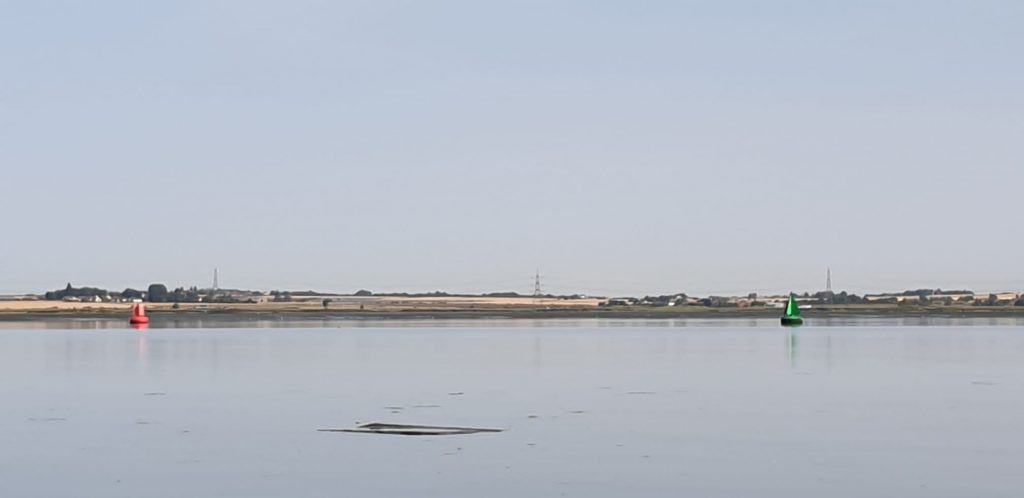 We arrived at Queenborough, at the mouth of the Medway, at HW to re-unite with Bumble Chugger who had sailed around the outside of Foulness from Bradwell. We tied up on the pontoon but I then realised that this was a mud berth that was only accesible for 2 hrs each side of HW. Oh well, we would just have to get up at 05:00AM  to move to a swinging mooring. We all had a lovely evening together in Queenborough YC. The bar was open, no food but they very kindly provided plates and cutlery so that we could get a chinese takeway delivered to the club.