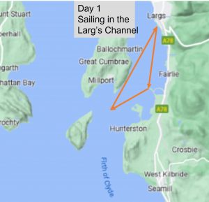 The next day, Tuesday,  was the first official day of the rally and consisted of sailing Sailing around Little and Great Cumbrae.
