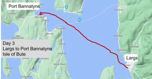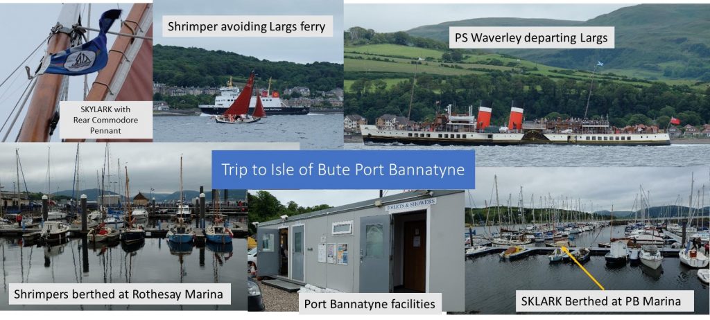 On Wednesday the fleet set out sailing across the Firth of Clyde, passing PS Waverley on the way. whilst continuing onto the marina at  Port Bannatyne on  the Island of Bute, just north of Rothesay, where a few of the Shrimpers choose to berth for the night. The group had an evening meal at the Victoria Hotel in Rothesay.