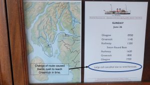 We continued to the Kyles of Bute but had to turn back before we reached the end due the weather. The return trip then returned to Rothesay to pick up passengers and then onto to Greenock where she berthed with difficulty due to the offshore wind.