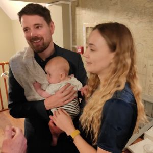 Paul was a past neighbour of mine for many years at Becket Hall, Welwyn and joined the club soon after me. He had two young children Tom and Sarah who I was very pleased to meet again at Paul’s funeral. Tom was showing off his latest 3 month old addition which he is holding in the picture above with Sarah standing alongside .