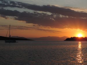 The second week saw us explore the east side of the gulf, Ermioni, a favourite of ours from our passage from Marmaris to the Corinth Canal in 2016. Dhokos Island, where having braved a late afternoon sudden increase in wind strength entering the bay, we enjoyed a beach party after the flotilla had rafted up.